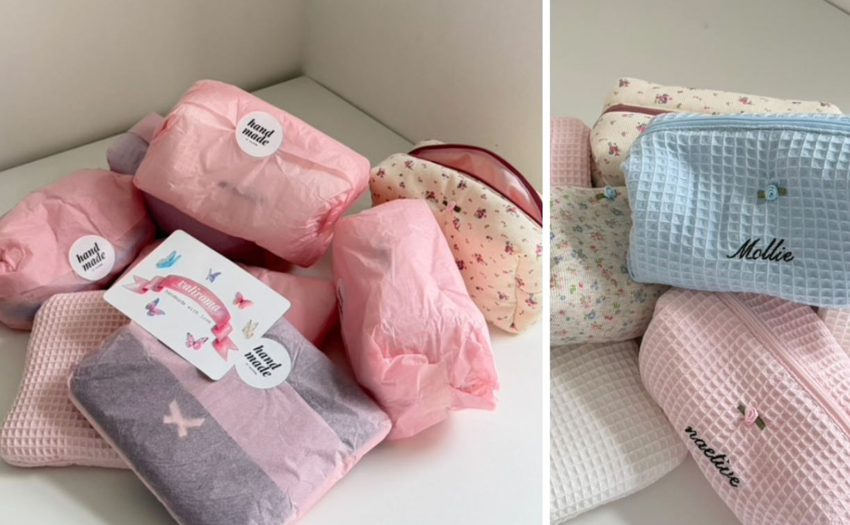 Handmade quilted beauty bags for everyday essentials — stitched in England and...