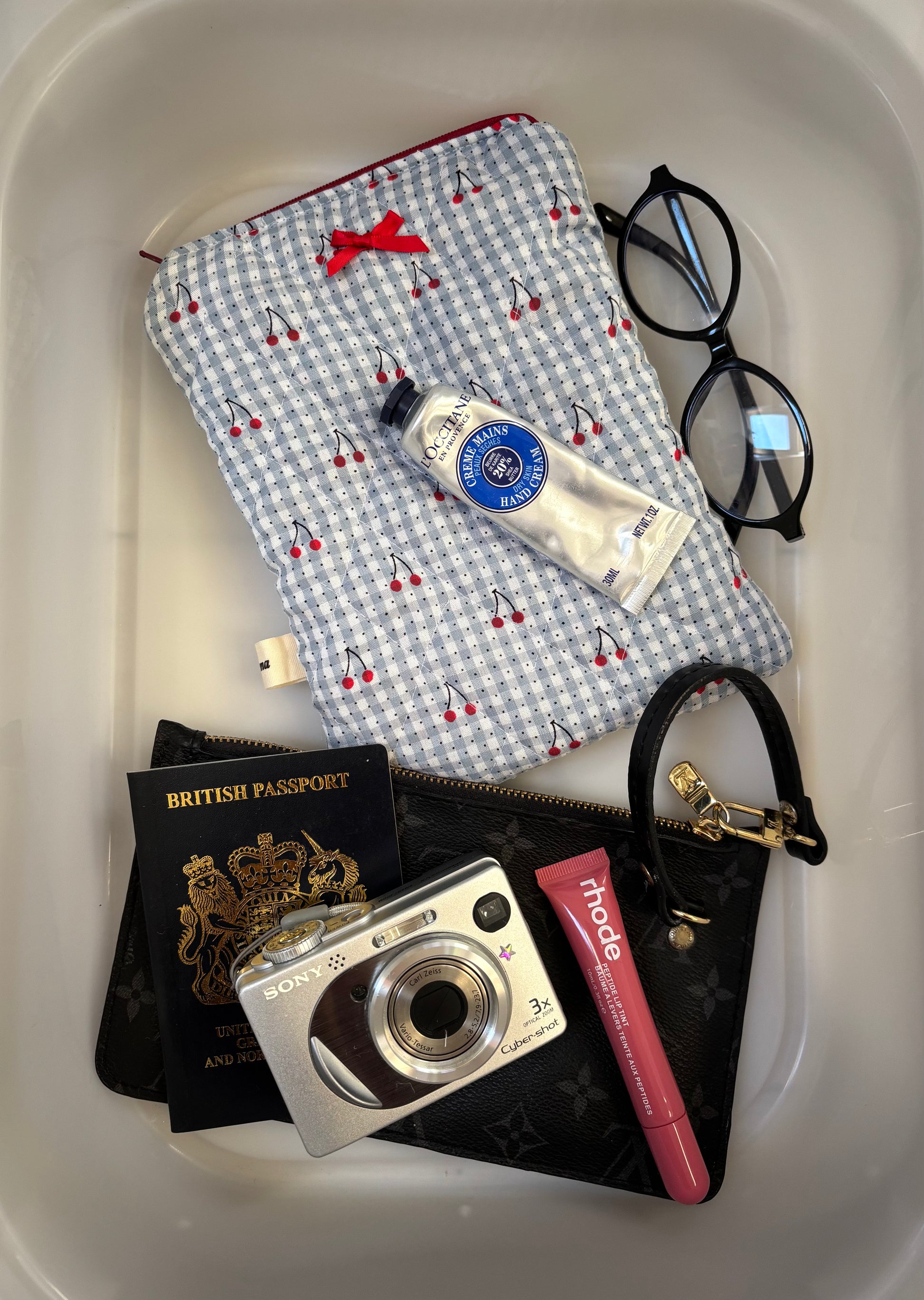 - Red zip and bow