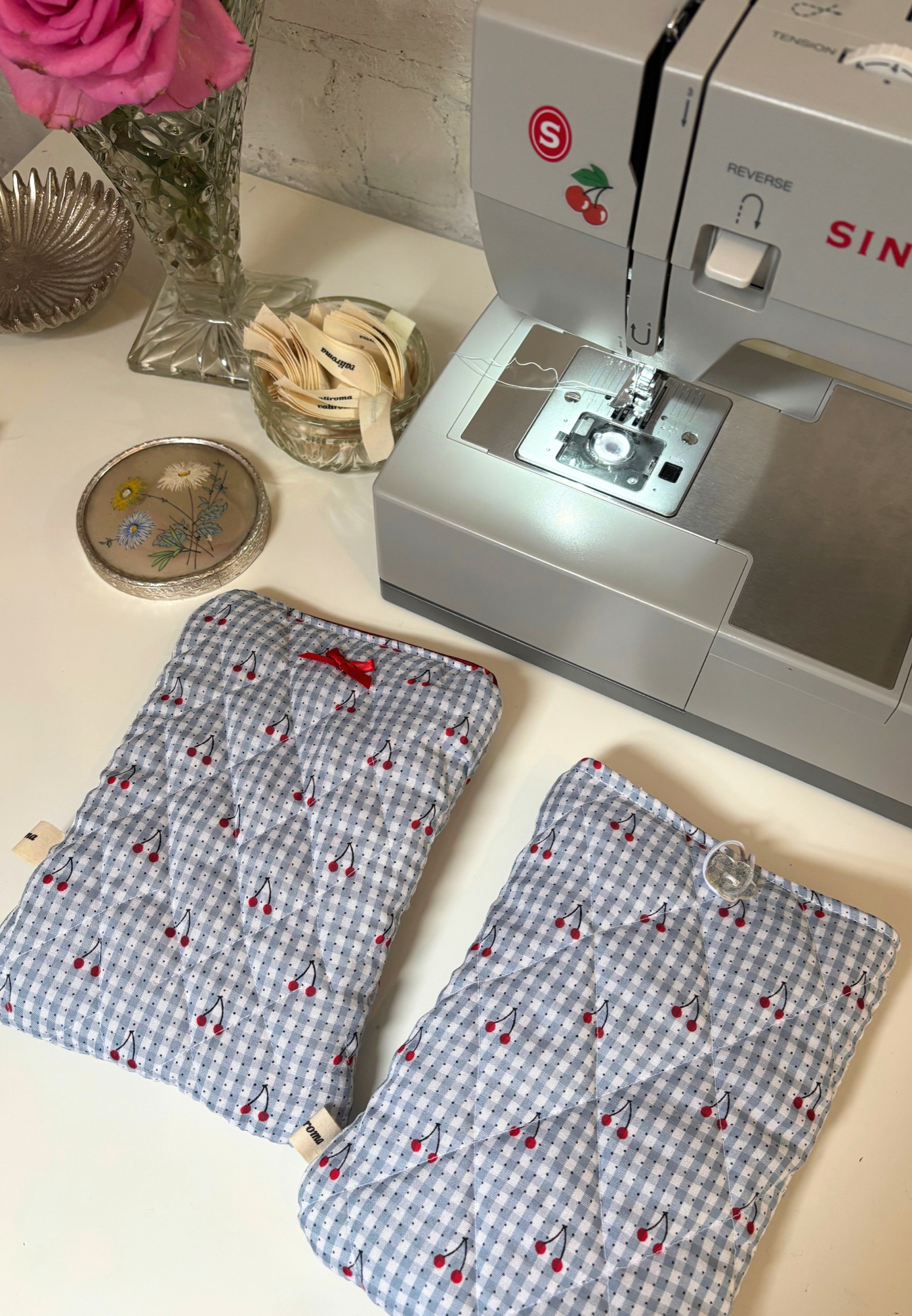 Handmade Blue Cherry Pink Book + eReader sleeve with a zip, a must-have accessory for any reading lover. The cutest way to protect you reads on to go!