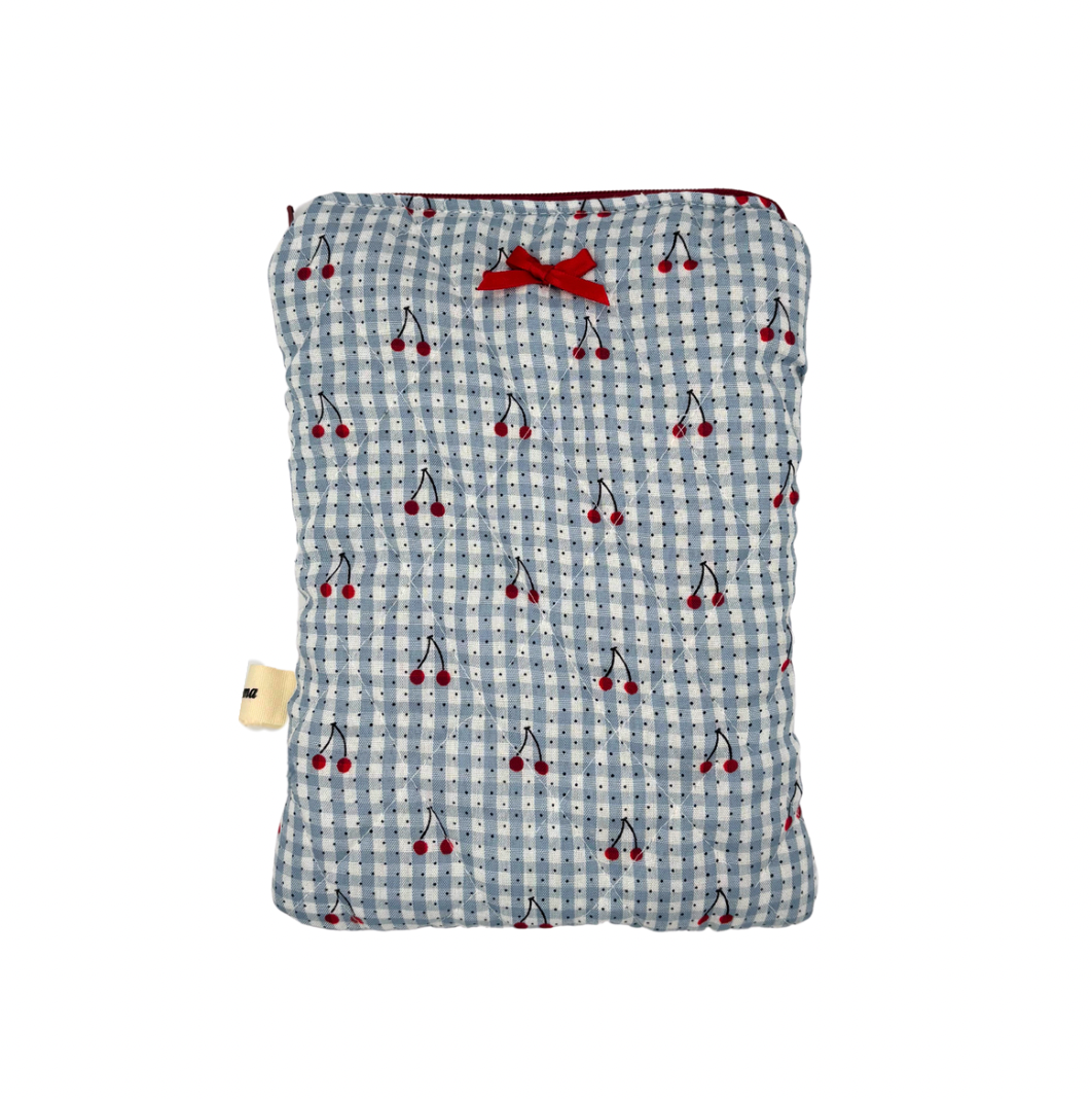 Blue Cherry Bow Book Sleeve with Zip