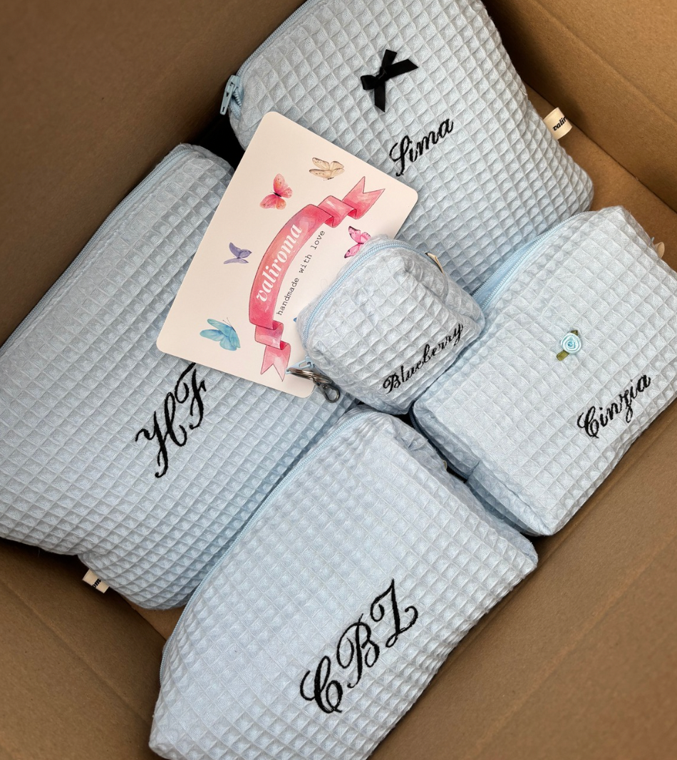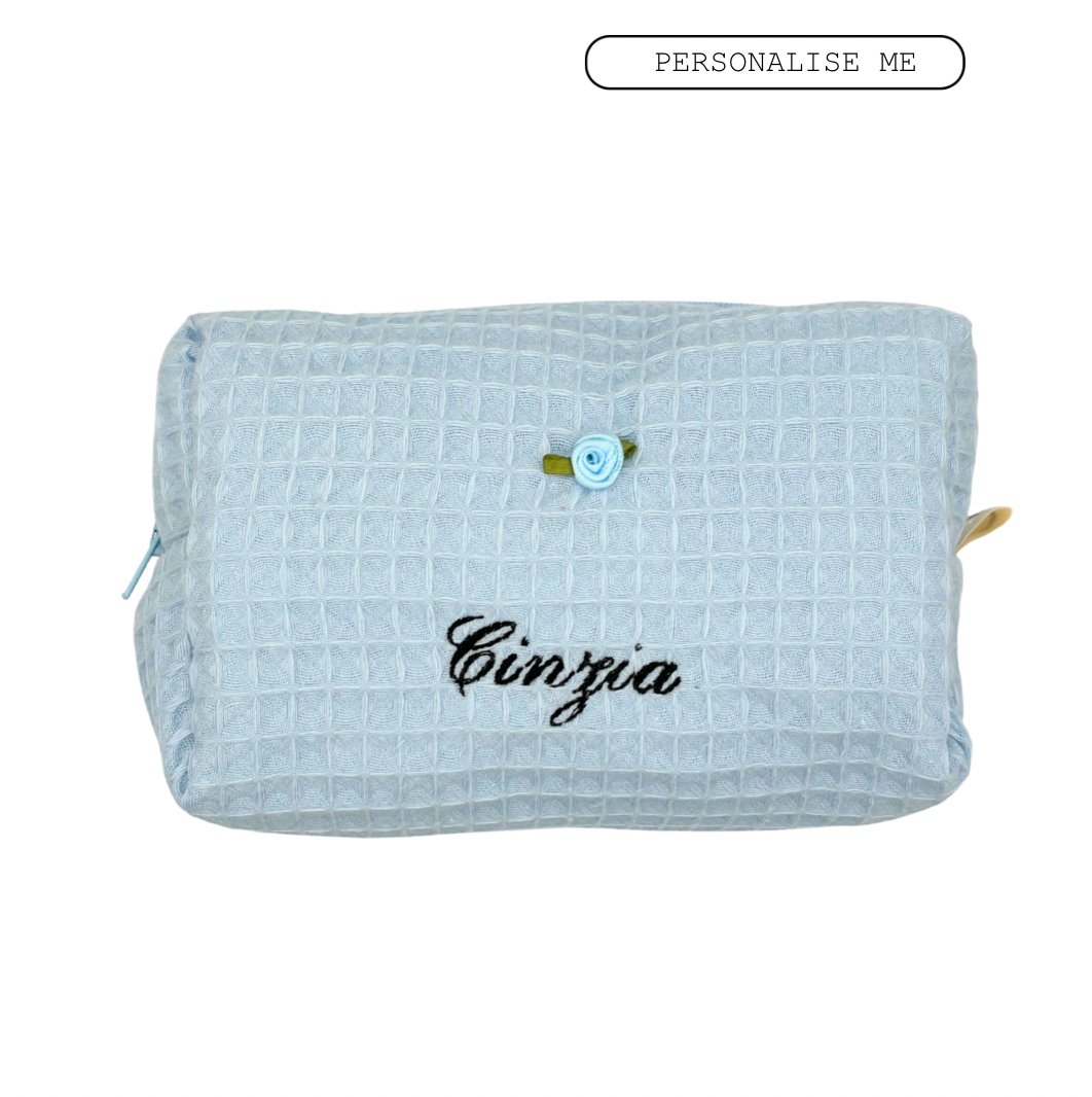 A touch of sweetness for your everyday essentials 💙 The Blueberry Beauty Bag is soft, spacious, and finished with a personalised embroidered detail to make it truly yours. Handmade in small batches from 100% organic cotton, it’s fully lined and softly padded to keep your treasures safe — whether it’s your skincare, makeup, or little daily must-haves.