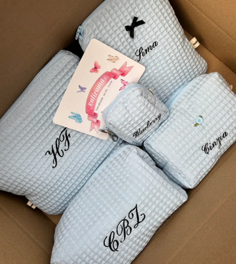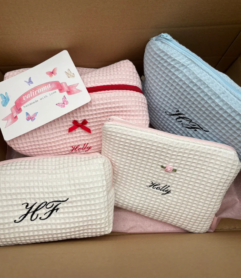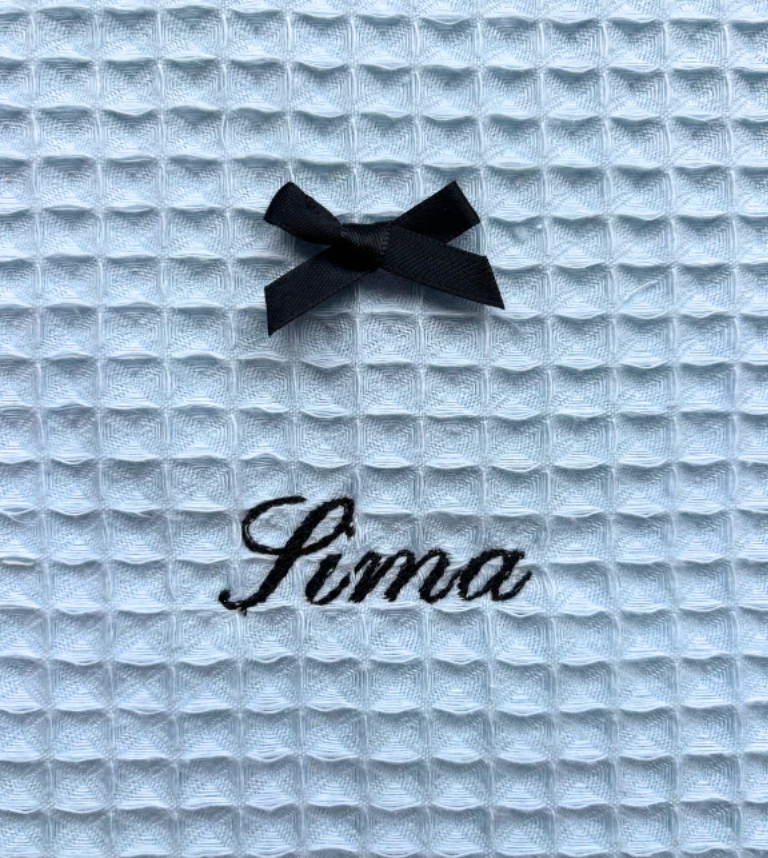 Name + Motif – your name embroidered alongside a sweet little detail (choose from a flower 🌸 or bow 🎀).