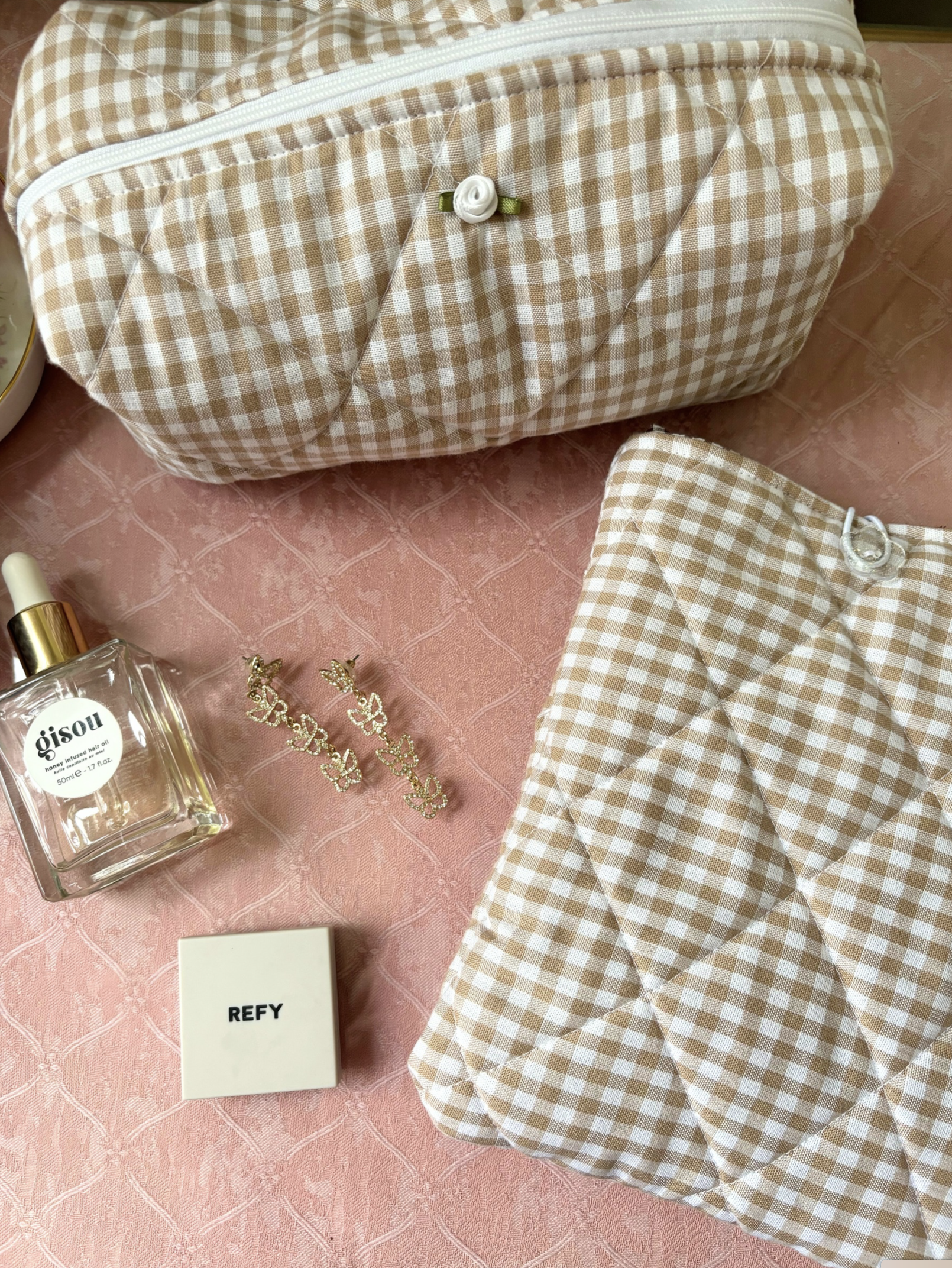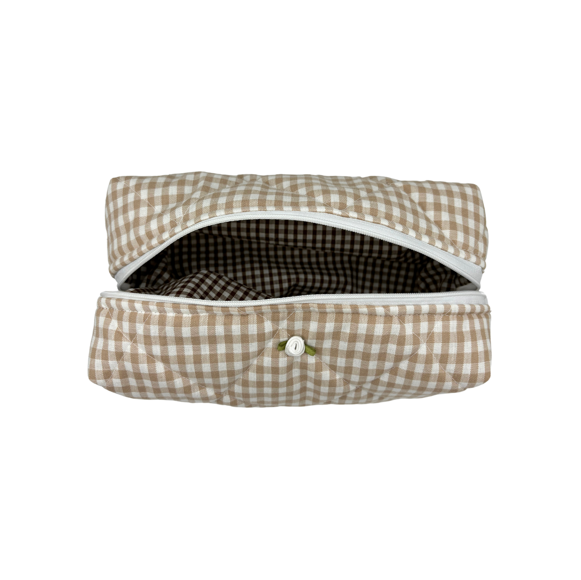 Our Handmade Celeste Beauty Bag is perfect for storing your essentials. Its size ensures quick and easy access to your loved essentials - making it the perfect companion for any time your on the move or organising on your dressing table