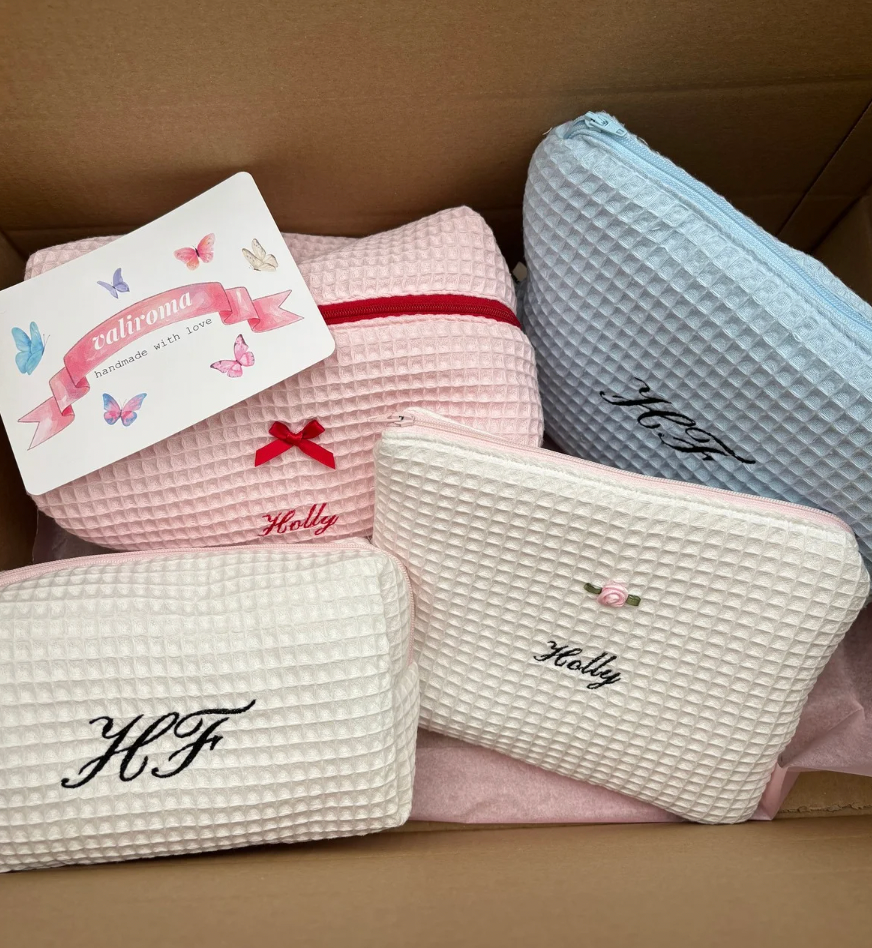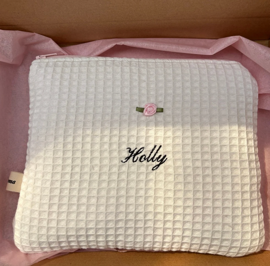 Soft, padded, and handmade with intention — this personalised beauty pouch is designed to keep your everyday essentials safe in style. Whether it’s for your makeup, hair accessories, stationery, or travel must-haves, it’s the perfect blend of practical and pretty.