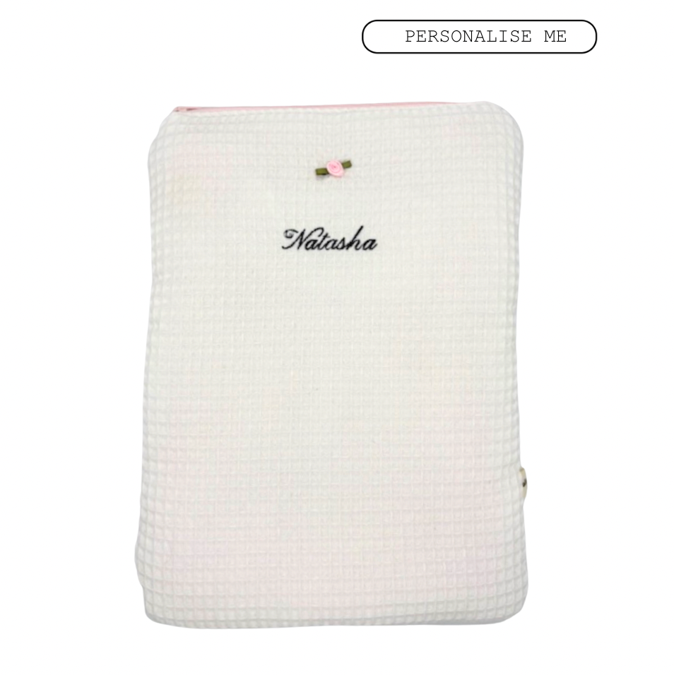 Meet your laptop’s prettiest companion — the handmade Rosa Personalised Laptop Sleeve. Crafted in our garden studio using 100% organic cotton and soft padding, it keeps your tech safe while looking effortlessly chic.