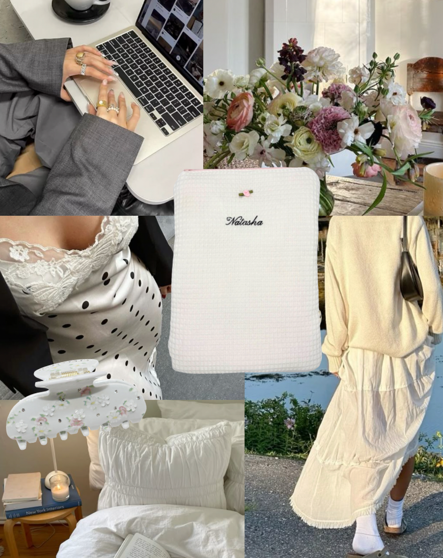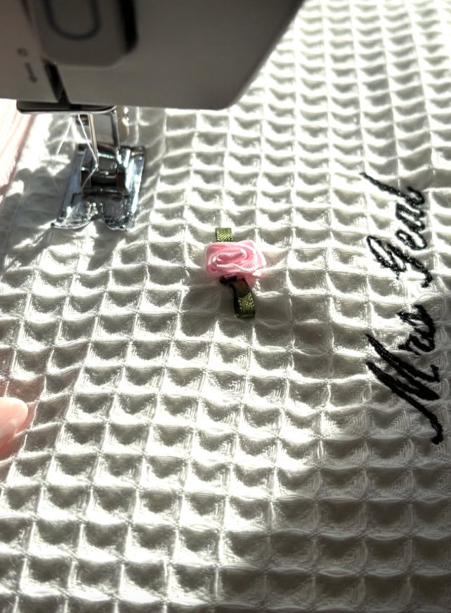 Or choose a delicate pink flower and embroidery for a sweet, feminine detail.