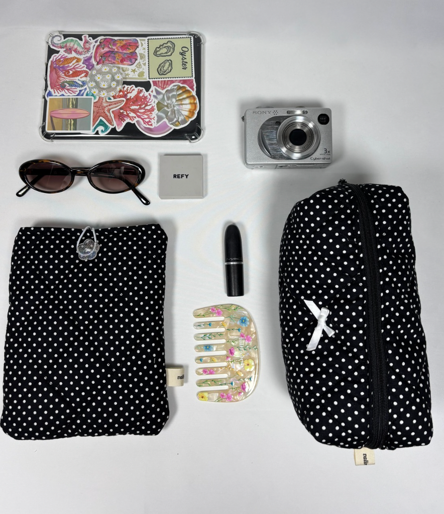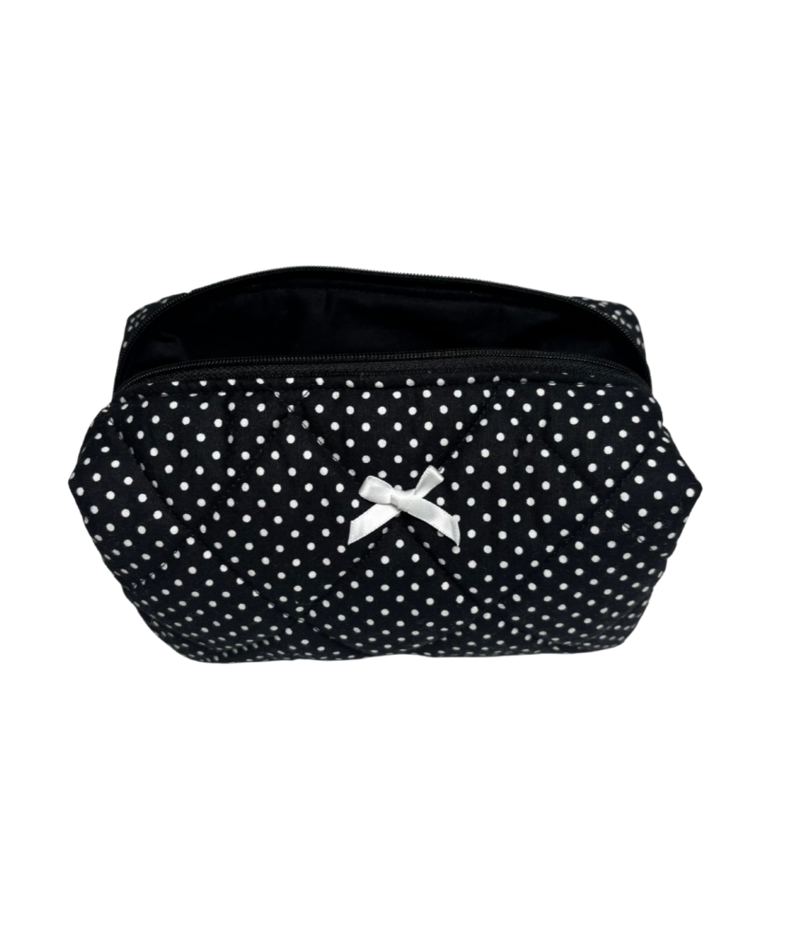 Meet the Polka Dot Beauty Bag — a softly padded, handmade essential designed to keep your makeup, skincare and daily favourites beautifully organised.