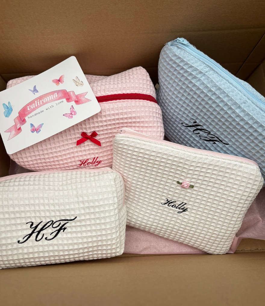 Perfect as a thoughtful gift or a treat for yourself, this pouch is the prettiest way to carry your makeup, skincare, accessories, or travel minis in style.