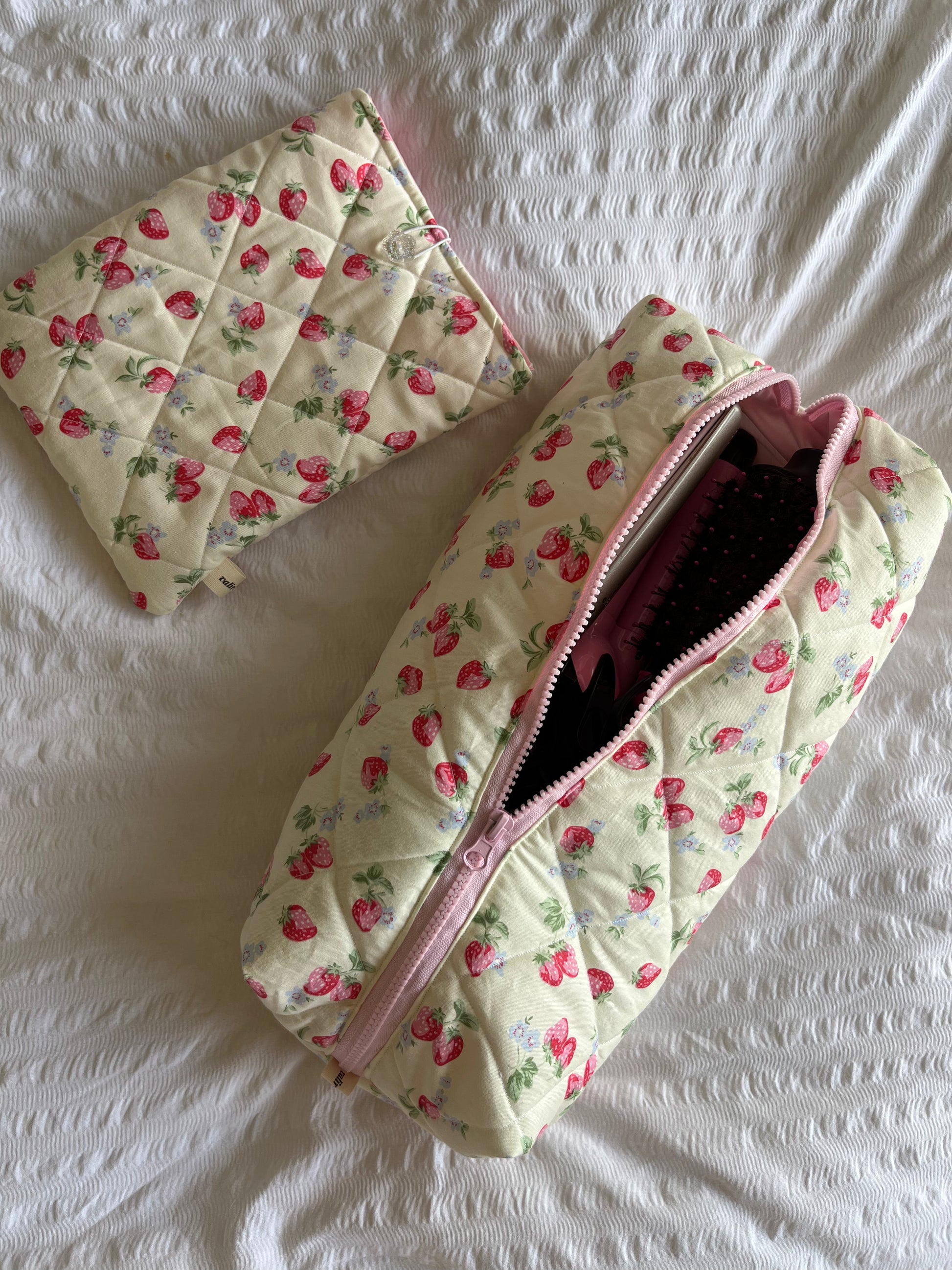 Carry all your hair essentials with our Strawberry DreamHair Tool Bag, we recommend to use her to carry your hot hair tools such as a straightener, curler or hair brushes, for size reference will easily store a the Dyson air wrap, rollers and even hair products. A hair tool bag case finally the perfect size to fit your tools and more! Perfect for your dressing table and travel!